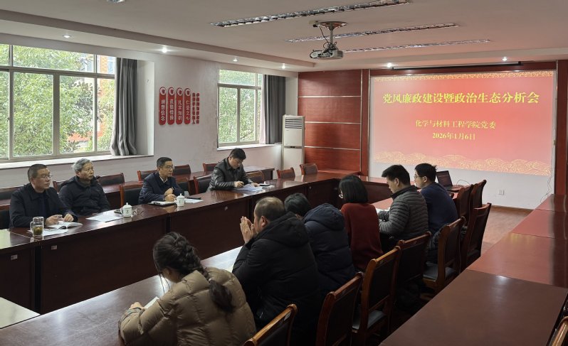 1月6日,化学与材料工程学院召开2025年下半年党风廉政建设暨政治生态状况分析会,校党委副书记章剑锋、校纪委委员吴国泉到会指导,学院领导班子成员、纪委委员参加会议。会议由学院党委书记郑启富主持。